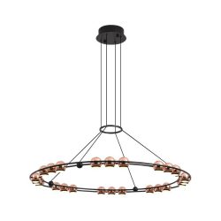 CEILING LIGHT (FATIMA'S BEDROOM)Material : Iron +aluminum + acrylicColor : Black + rose goldLamp Holder : LED*24*3WLamp Body(mm) : D850*H1800The overall height of this item is flexible and can be customized by shortening or extending the suspension length
