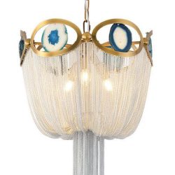 CEILING LIGHT (MASTER BEDROOM)Material:Metal + aluminum chainColor:Gold bronze + silver chainLamp holder:E14*4Lamp Body(cm):D45*H70(Excluding the bulb)