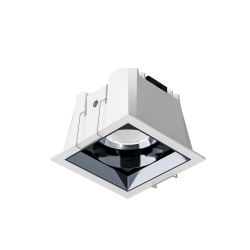 High-output square recessed spotlight with modern design for uniform ceiling lighting.10W | AC200–240V | 24° | 162.5×85×59 mm | Cut-out 150×75 mm